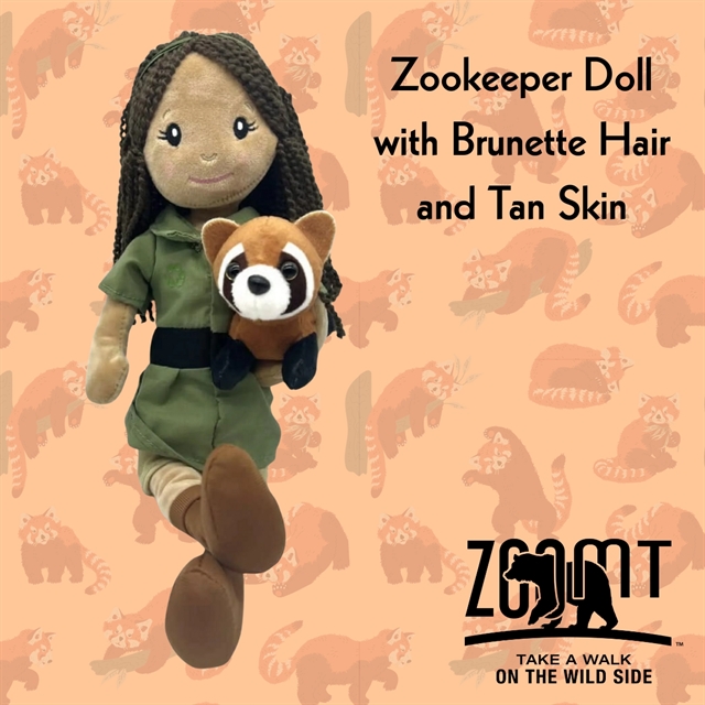 This zookeeper doll is perfect for animal lovers or anyone who wants to be a zookeeper when they grow up!  Coming in at 16 inches tall, this doll features soft curls that won't tangle and a removable red panda plush!