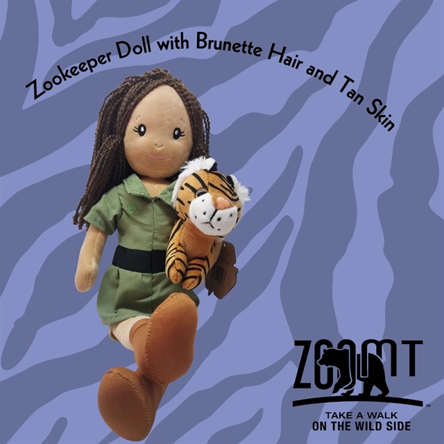 This zookeeper doll is perfect for animal lovers or anyone who wants to be a zookeeper when they grow up! Coming in at 16 inches tall, this doll features soft curls that won't tangle and a removable tiger plush!