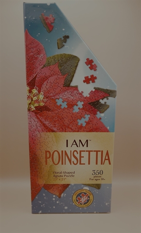 I am a Poinsettia Puzzle, 350 pieces.  There are no square corners or straight edges - just a little challenge with a lot of fun. Each piece is random cut and interlocking.